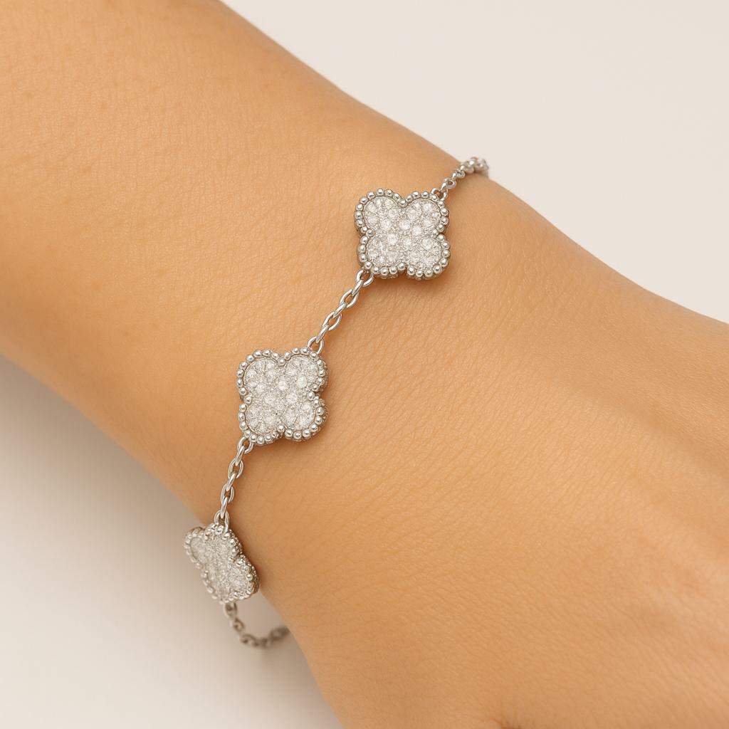 Pulsera Plata 925 ,trebol con cubic, largo total 20cm.